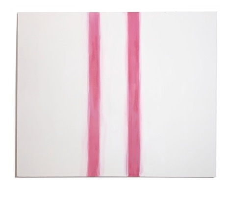 This series of works, abstract at first glance, is a reflection on the theme of women's memory. In the life of a modern woman, two stripes are a symbol and a harbinger of a new life. The two primary vital colors are white and red, the binary language that precedes life. Homage to Russian avant-garde artist Olga Rozanova.